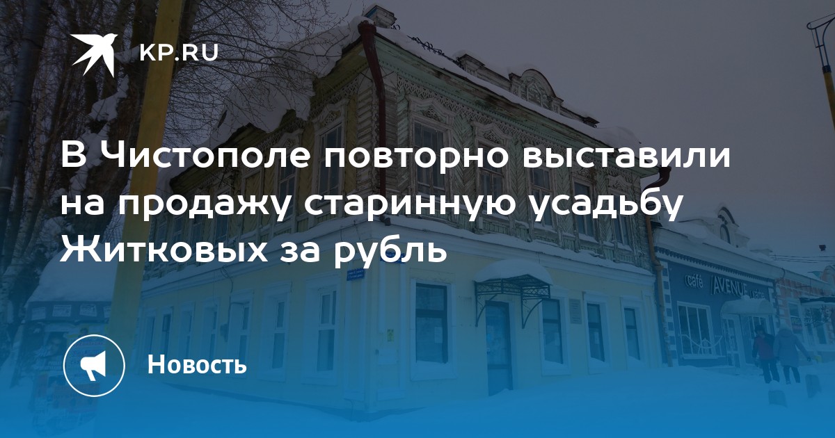 В Чистополе помещения главного дома усадьбы Житковых, которые в 2023 году были проданы всего за 1,2 рубля, вновь выставлены на торги. Речь идет о втором этаже двухэтажного полукаменного дома, построенного во второй половине XIX века. Первый этаж здания находится в частной собственности. Первоначальный инвестор, приобретший объект по льготной цене, взял на себя обязательства по реставрации, однако не выполнил условия договора. В октябре 2025 года соглашение было расторгнуто, а помещения изъяли по решению суда.