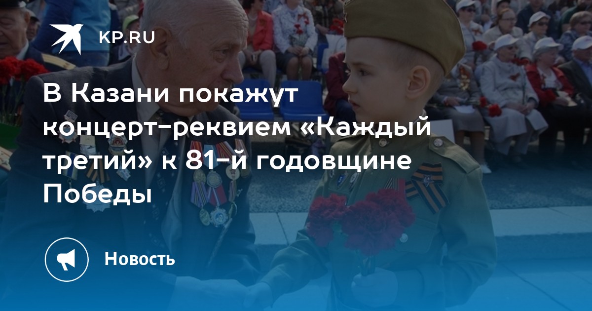 В Казани 28-29 апреля пройдут показы концерта-реквиема «Каждый третий», приуроченные к 81-й годовщине Победы. Мероприятия состоятся в павильонах МВЦ «Казань Экспо».